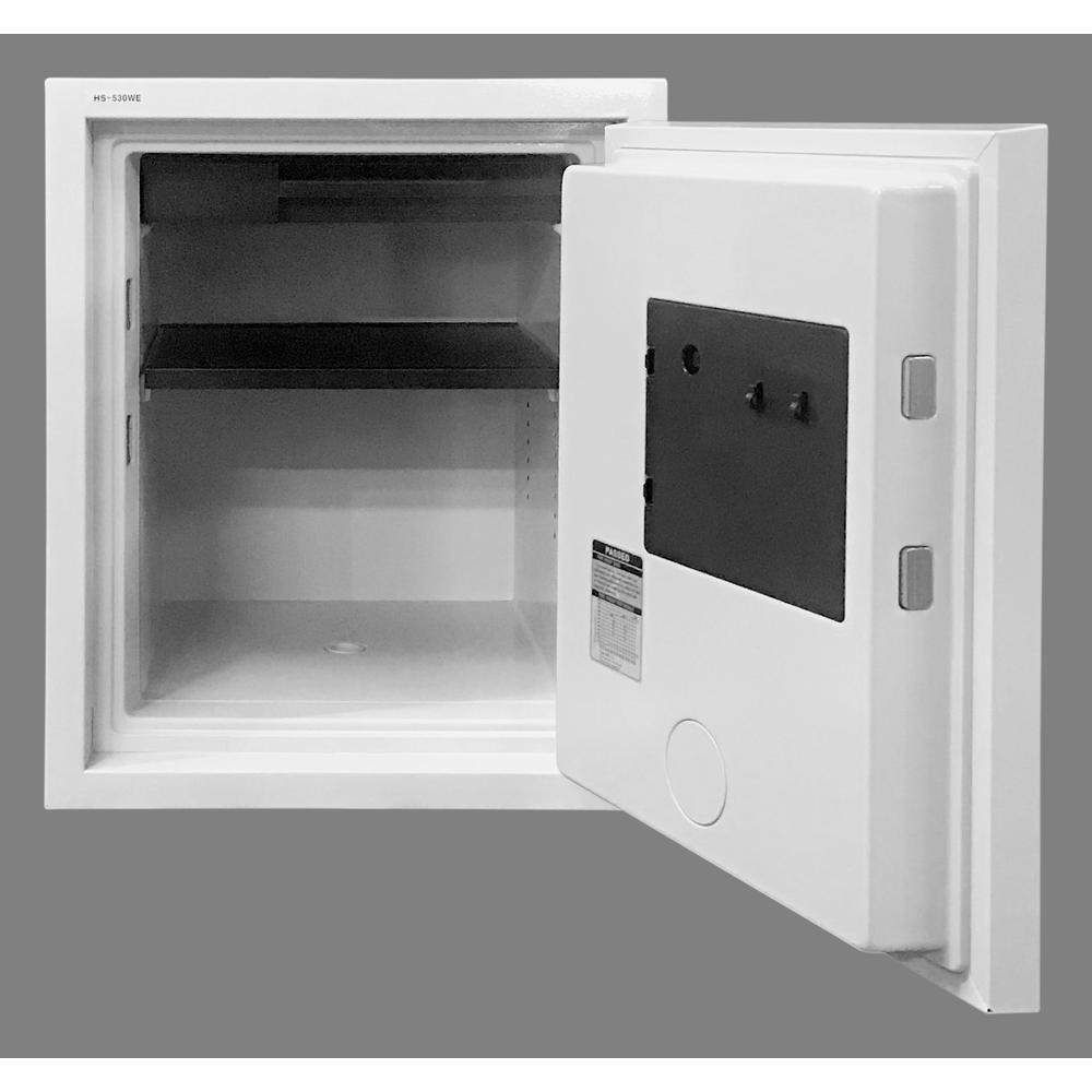 Two-hour fire rated for 1850 degrees Seamless body and door construction. Electronic keypad for easy programming. One user and one master code, 3-8 Digits 2-Active round locking bolts PLUS fixed hinge side bolts One removable shelf