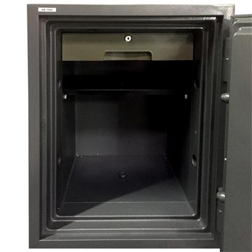 2-hour fireproof 30 foot Impact rated 2-way locking chrome bolt work Re-Locker for extra burglary protection Interior adjustable shelves in all models S&G Dial Lock Factory Warranty