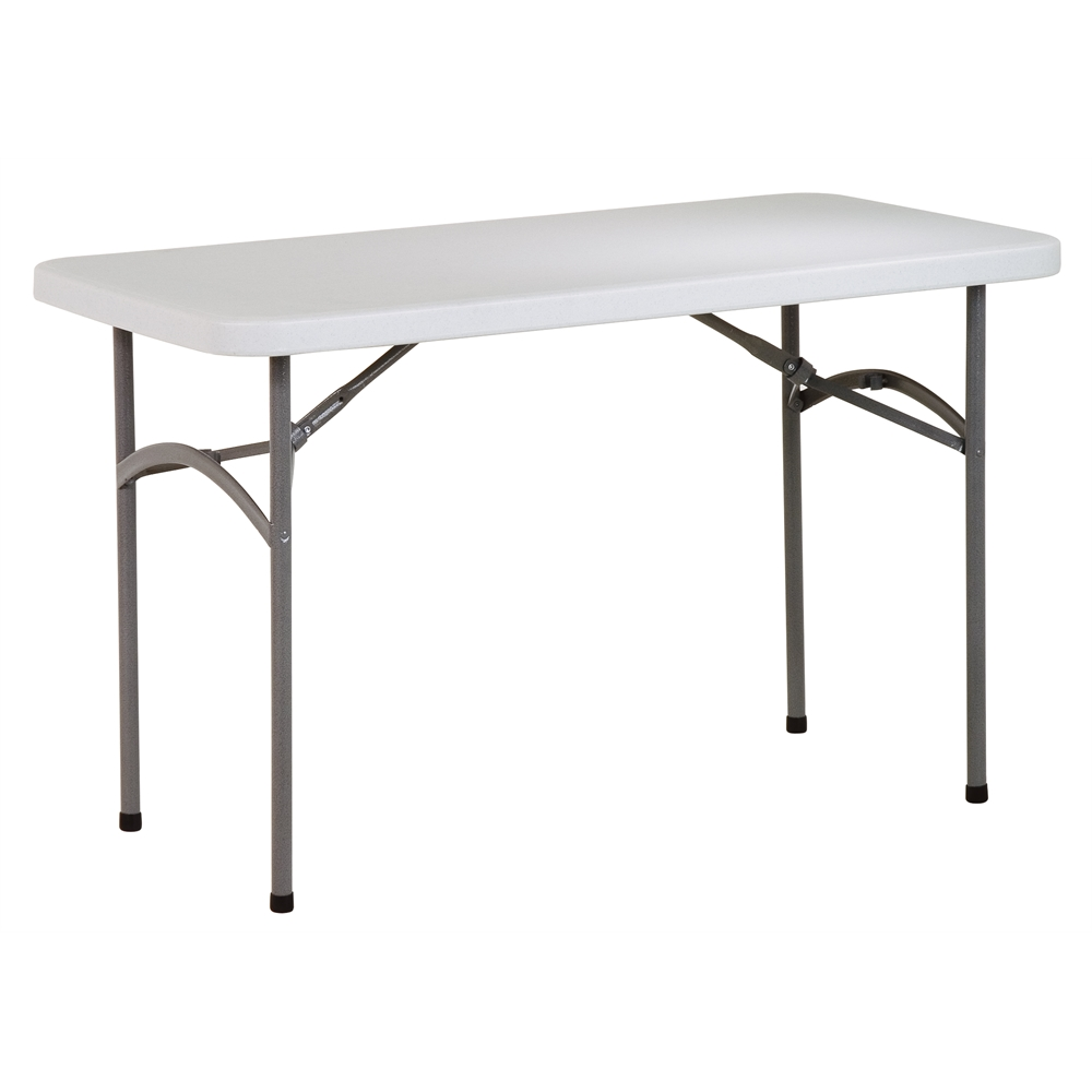 4' Resin Multi Purpose Table. Durable Construction. Light Weight Sleek Design. Powder Coated Tubular Frame. Ideal for Indoor or Outdoor Use. Easy Storage. Meets or Exceeds Test Standards (BIFMA and MTL)