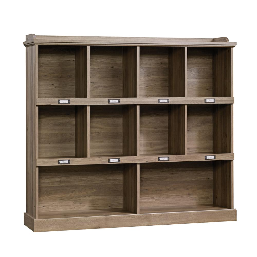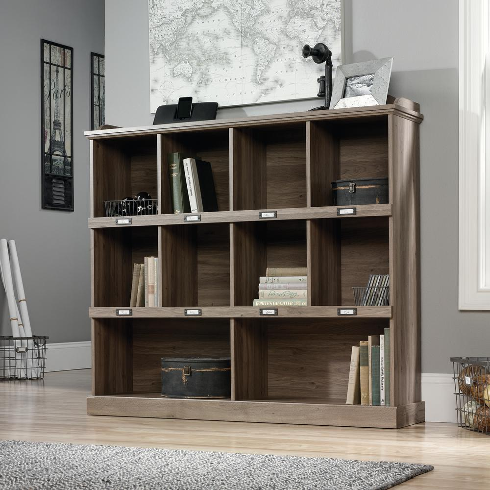 Never sacrifice style to add extra storage in the home. A Sauder cubby bookcase for storage and display is the perfect solution for home fashion fixes. From the Barrister Lane storage furniture collection, this bookcase features 10 cubbyholes for organization, storage, and display of home essentials in any room- from the bedroom to the living room or even the kitchen. Stylishly store and display a collection of books, decorative knick-knacks, miscellaneous office supplies, and household items. There is plenty of room for all oodles of stuff on this bookcase. Keep the home organized and clutter-free by adding labels to the ID label tags on this bookcase. Label each cubby so to easily find what lies inside, without sorting through a stack of items. Use the spacious top surface to display a speaker system, an accent lamp, a vase full of flowers and more. Functional storage compartments and style make this bookcase the perfect fit for any room. The neutral Salt Oak finish perfectly coordinates with other room accents, for the ultimate versatile storage solution