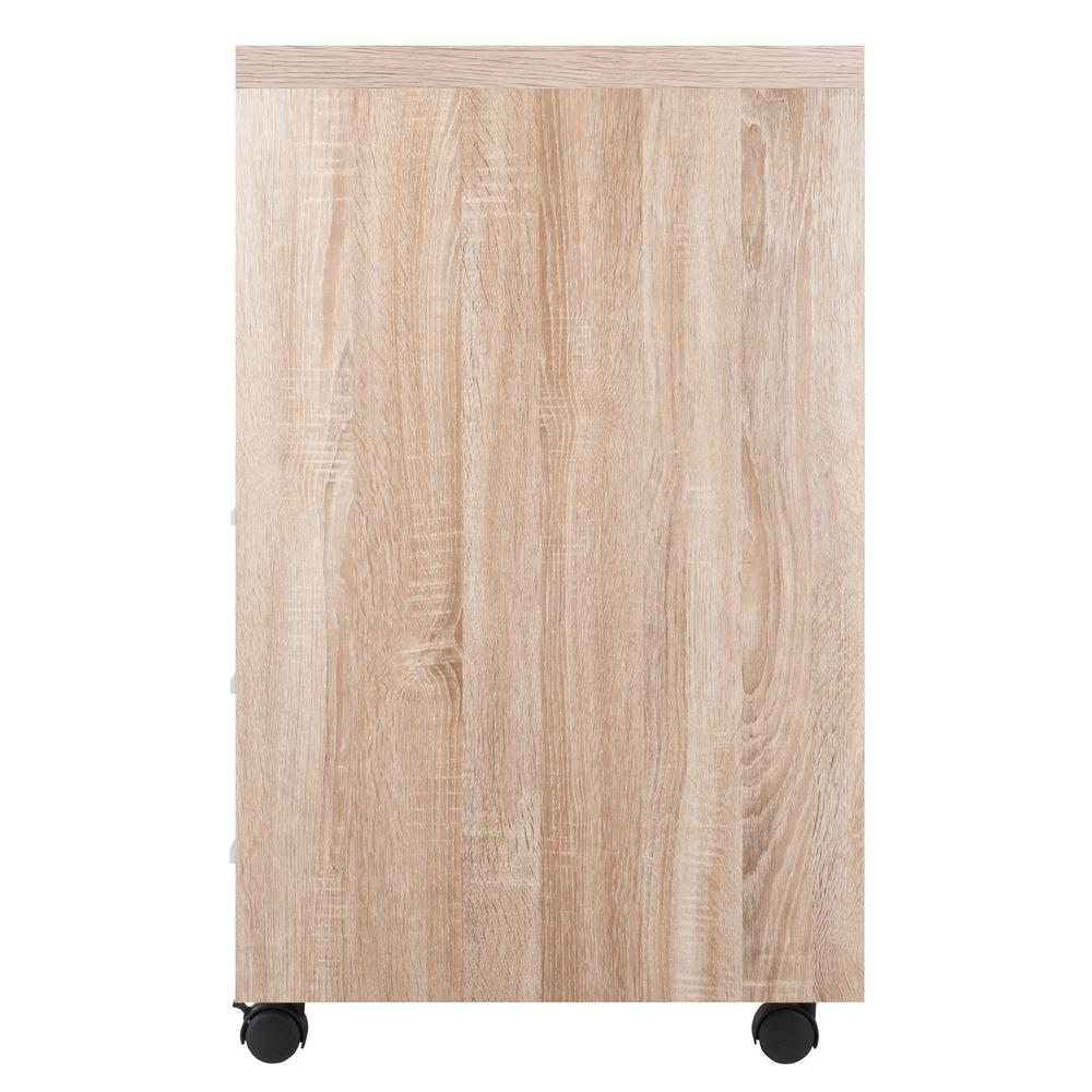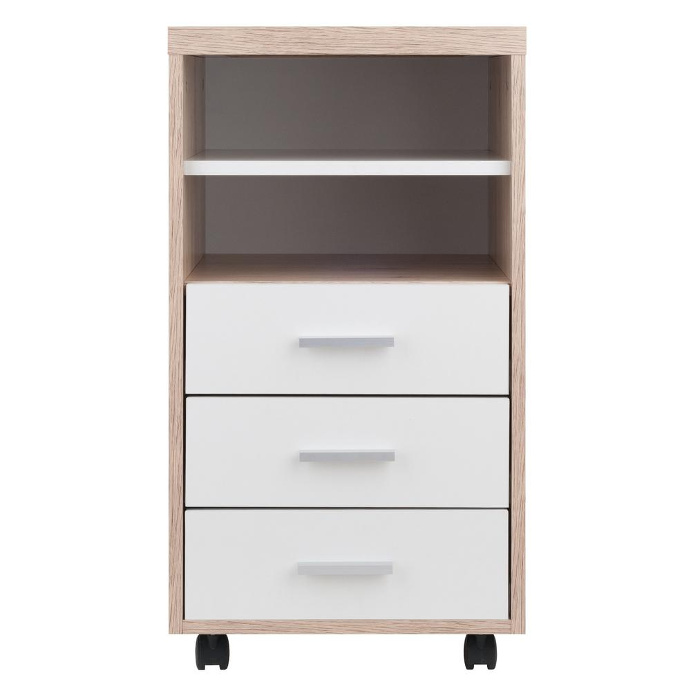 Customize your home or professional workplace with the Kenner Mobile Storage Cabinets. This Winsome Kenner 3-Drawer Storage Cabinet is practical and functional on its own or can be combined with the Modular Desk Top along with any of the other Kenner Mobile Cabinets (each sold separately). The storage unit, which has 3 drawers and 2 open shelves, is ideal for a home office, artist's studio, or anywhere you need storage with a bright, contemporary look. The unit moves easily on sturdy casters, two of which lock. And the styling of the cabinet is as handsome as it is versatile. The frame is made of durable composite wood in a finish that has all the appearance of natural reclaimed wood. The cabinet facings and shelf are finished in linen white with modern matte-silver plastic cabinet drawer and door pulls. Conveniently packed and shipped in 1 box, that includes the hardware necessary for assembling. Overall dimensions: 15.75"W x 18.3"D x 29.25"H Shelf is stationary (and not removable after assembly)Inside dimensions of upper open shelf: 14.4"W x 16.4"D x 4.8"HInside dimensions of lower open shelf: 14.4"W x 16.4"D x 4.75"HInside drawers dimensions (3x): 12.4"W x 13.7"D x 2.6"HBlack plastic casters, 2 of which are locking Assembly requiredShips in 1 box