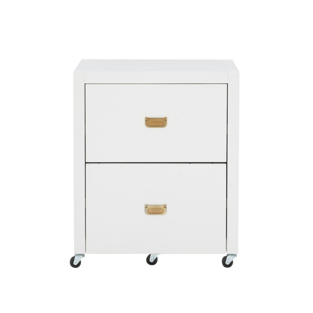 Get Organized With This Handy Two Drawer Filing Cabinet. Rolling And Locking Casters Allow For Mobile Storage, While Metal Drawer Glides And Shiny Gold Campaign Style Handles Provide Easy Access To Documents. Standing At 26.75” High And 22” Deep, This Cabinet Is Easy To Tuck Into A Corner And Acts As The Perfect Stand For A Printer. The Bottom Drawer Is Designed For Standard Or Legal Sized Filing And The Top Is Convenient For Miscellaneous Supplies. A Clean White Painted Finish Pairs Well With Any Home Decor Style.