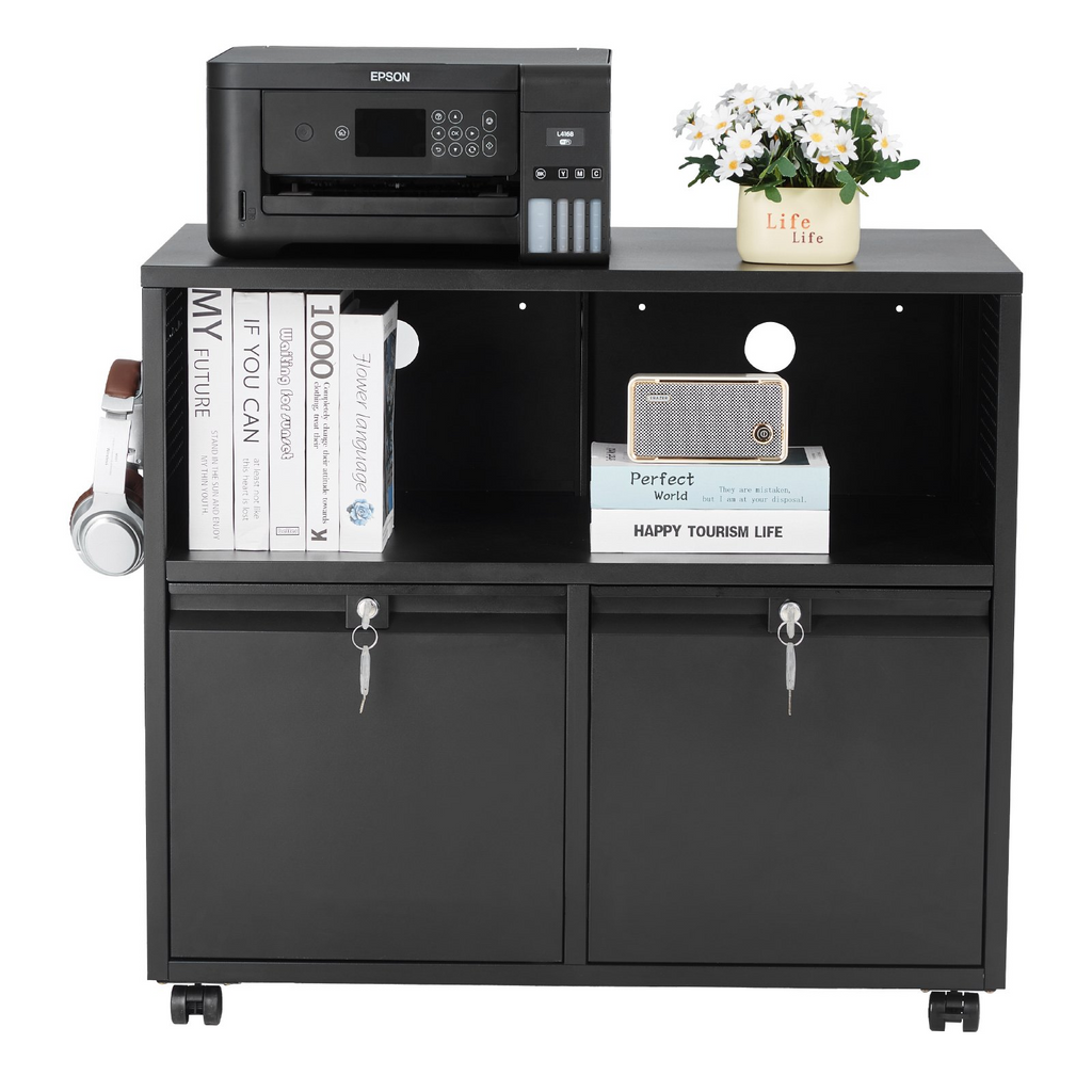 VEVOR 2 Drawers Metal File Cabinet, Lateral Filing Cabinet with Lock and Adjustable Hanging Rods, Wide Filing Storage Cabinets for Home and Office Fit Letter, A4, Legal Size File, Easy Assembly, Black