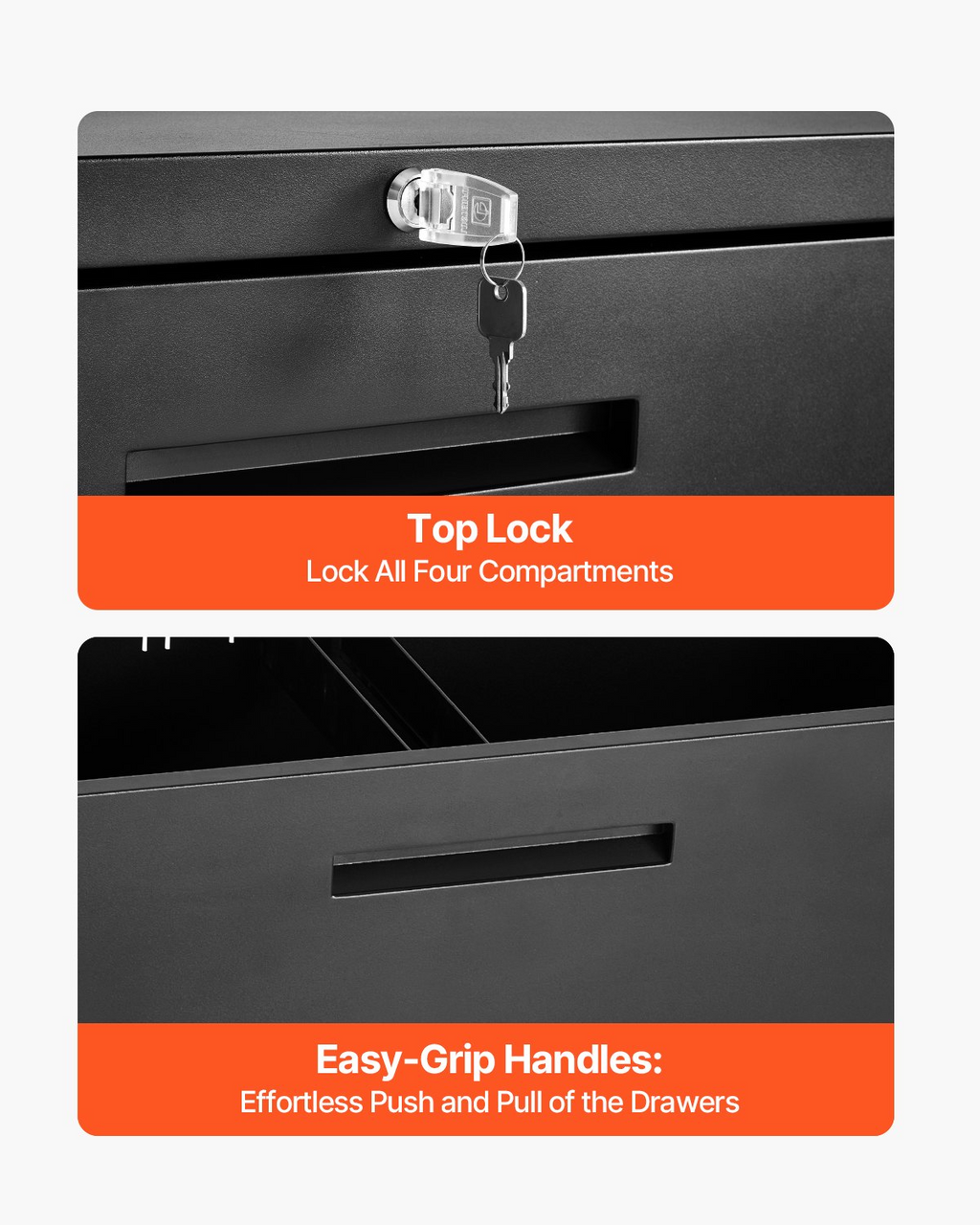 VEVOR 4 Drawers Metal File Cabinet, Vertical Filing Cabinet with Lock and Adjustable Hanging Rod, Tall Filing Storage Cabinets for Home and Office Fit Letter, A4, Legal Size File, Easy Assembly, Black