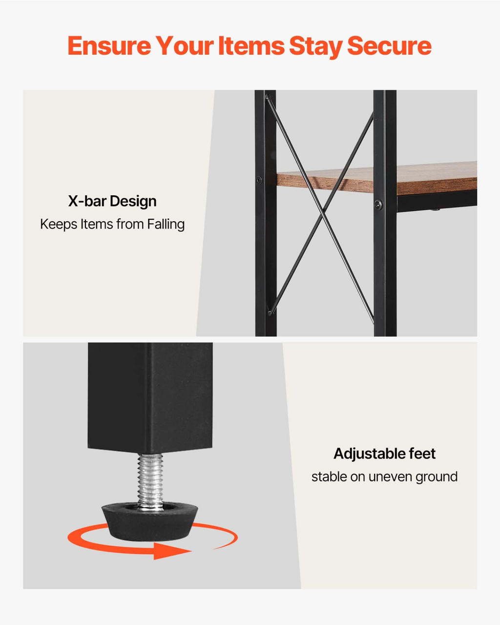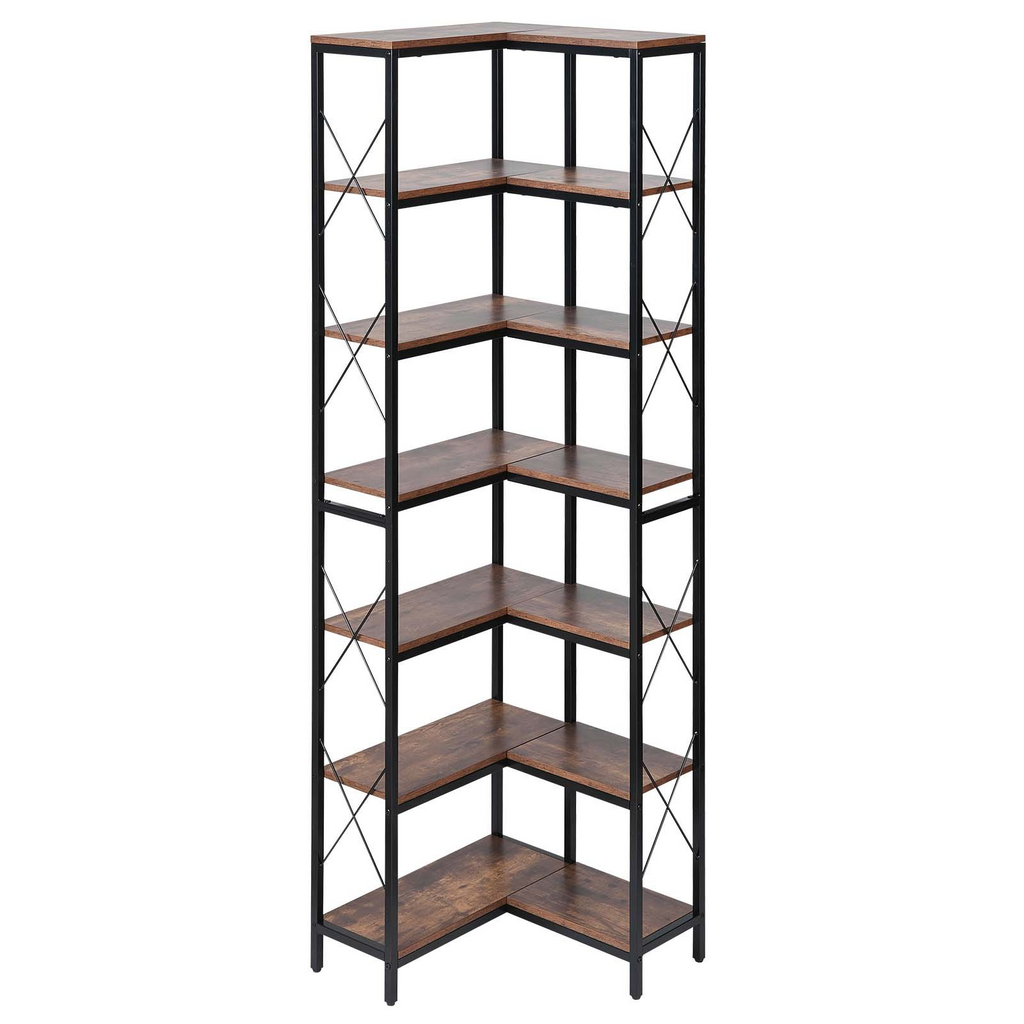 VEVOR 7 Tier Corner Bookshelf, 79" Tall Corner Bookcase with Heavy Duty Metal Frame & Wooden Shelves, Industrial Reversible L Shaped Corner Display Shelf for Bedroom, Living Room, Office