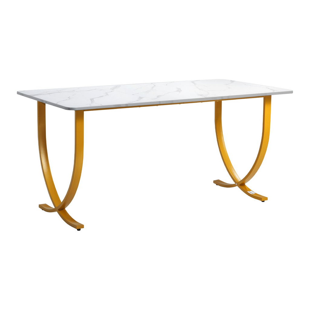 Load Capacity: 350 lbs / 158 kg,Desktop Thickness: 0.6 in / 1.5 cm,Square Tube Side Length: 0.8 in / 2 cm,Color: White Tabletop + Gold Legs,Item Model Number: ZH607,Material: Q195 Steel + Particle Board,Product Dimensions: 63.0 x 31.5 x 29.5 in / 160 x 80 x 75 cm,Net Weight: 43.6 lbs / 19.8 kg