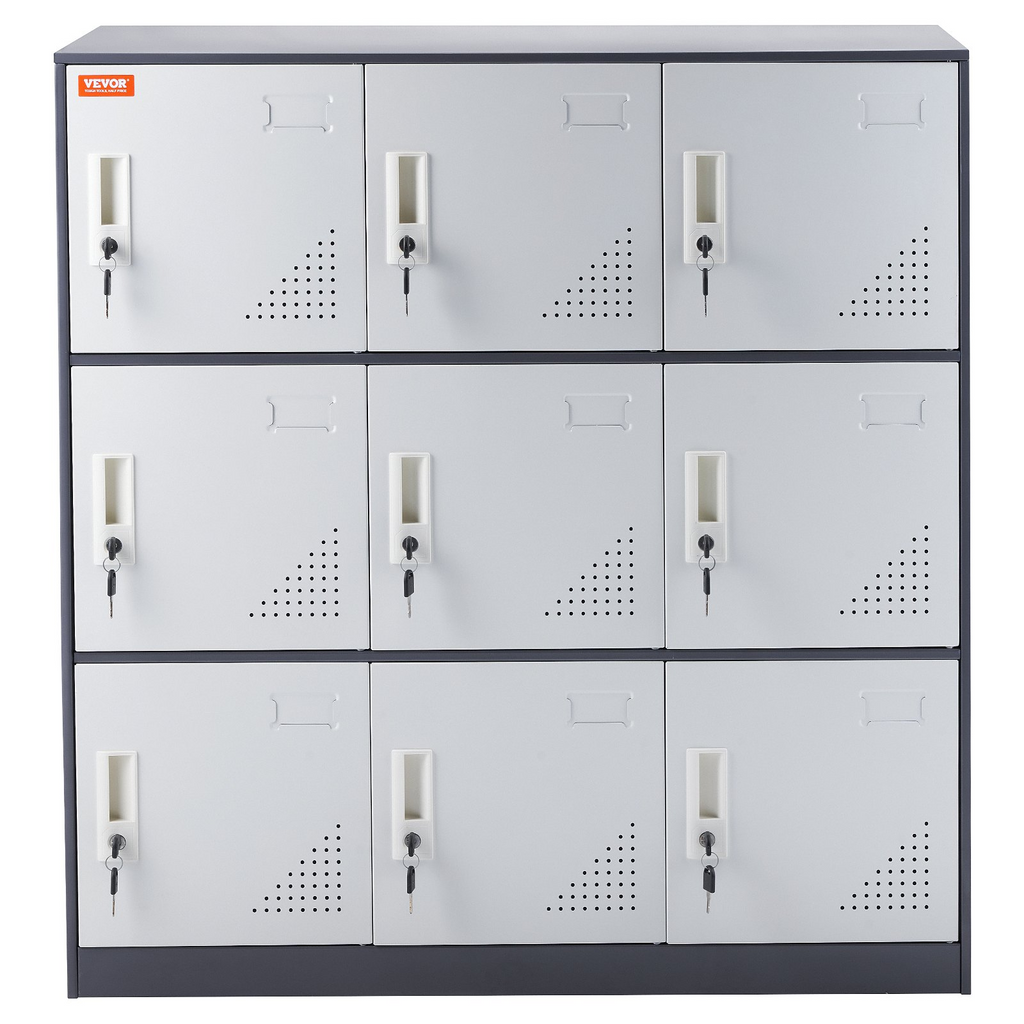 VEVOR Metal Locker for Employees, 9 Doors Storage Cabinet with Card Slot, Gray Steel Employee Lockers with Keys, 66lbs Loading Capacity office Storage Lockers for Home, School, Office, Gym