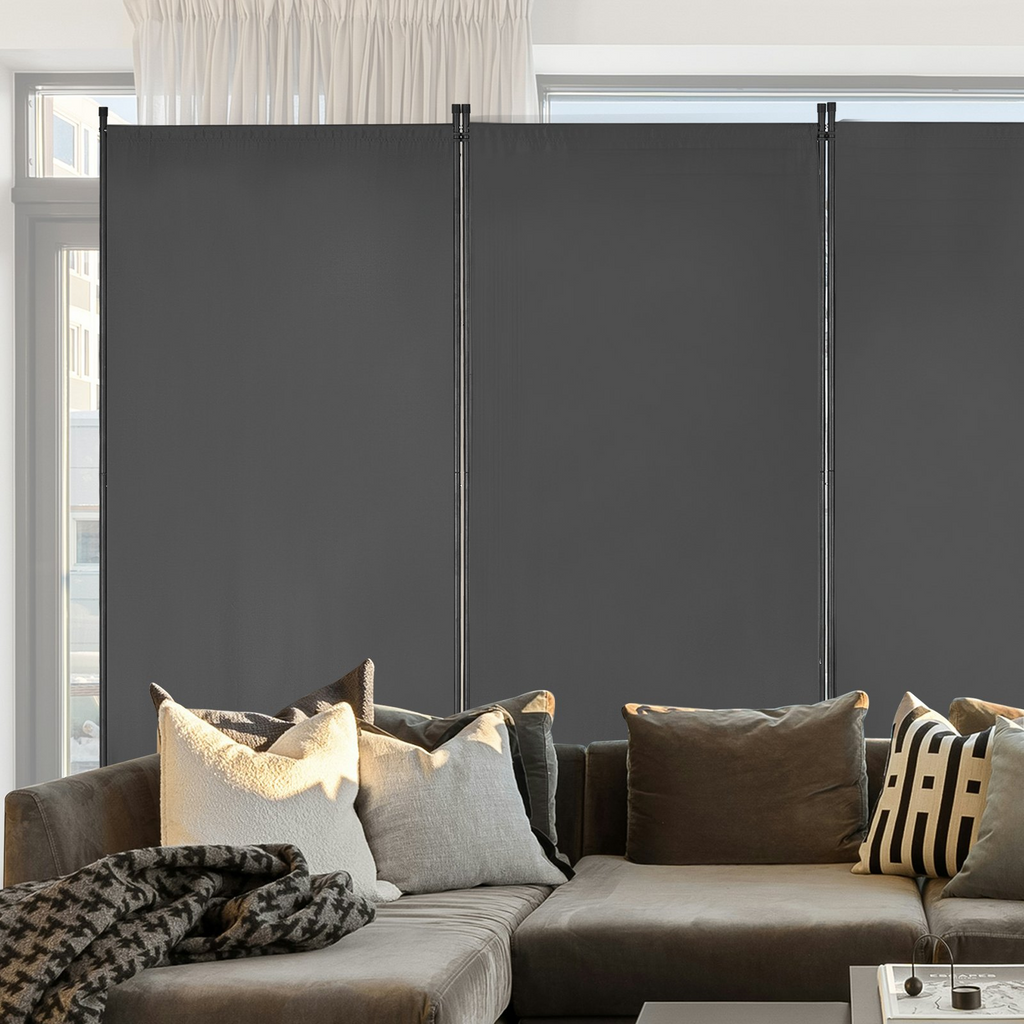 Mobility Type: Fixed,Single Panel Width: 34 in / 863.6 mm,Number of Panels: 3,Color: Gray,Item Model Number: PFTSTGSH05,Product Dimensions: 102.4 x 72.4 x 20.4 in / 2600 x 1840 x 520 mm,Net Weight: 15.9 lbs / 7.2 kg,Main Material: Iron / Oxford Fabric