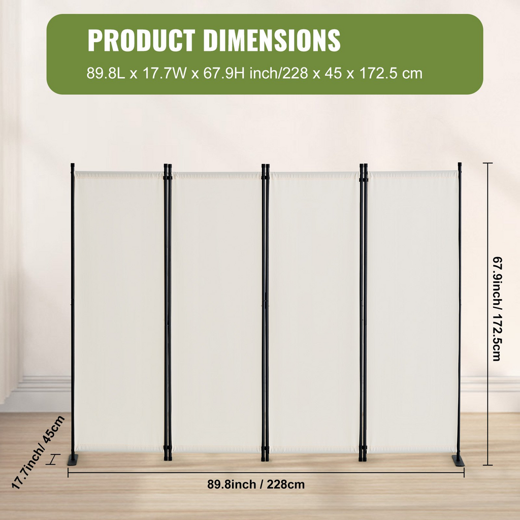 VEVOR Room Divider, 4 Panel Room Dividers and Folding Privacy Screens, Fabric Partition Room Dividers for Office, Bedroom, Dining Room, Study, Freestanding, White
