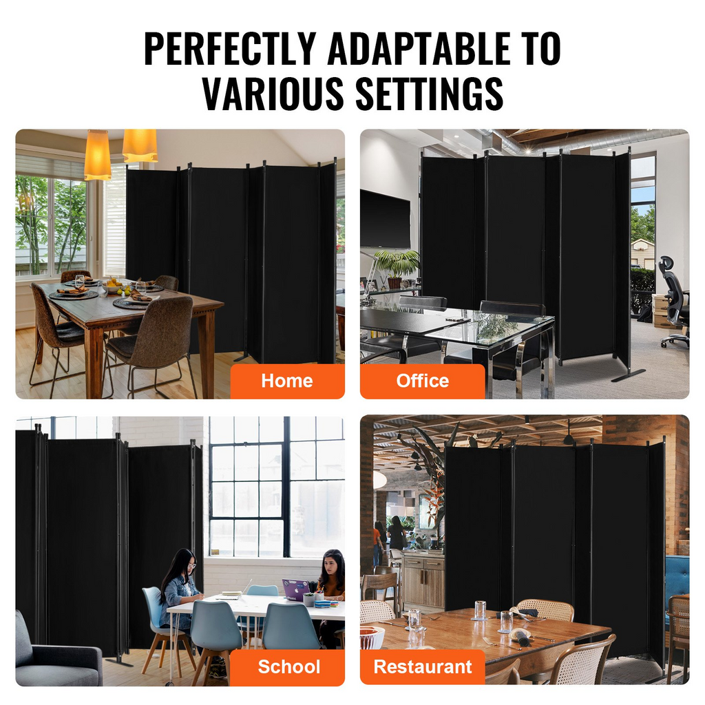 VEVOR Room Divider, 6 Panel Room Divider, Folding Privacy Screen and Portable Partition Divider for Room Separation, Freestanding Room Partitions for Office, Bedroom, Study, Black