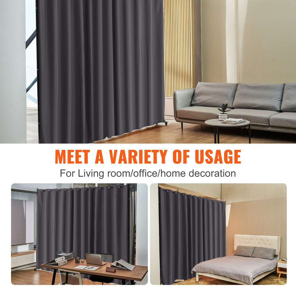 VEVOR Room Divider, Portable Panel Room Divider with Wheels Curtain Divider Stand, Freestanding Room Divider Privacy Screen for Office, Bedroom, Dining Room, Study, Gray
